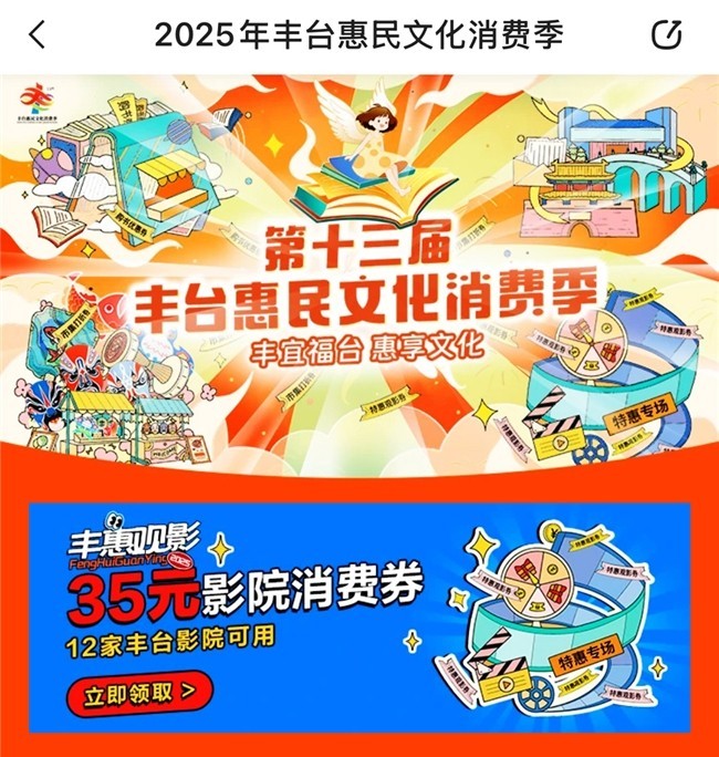 “丰·惠”观影主题活动作为消费季重要组成部分,通过“电影+美食”跨业态联动补贴模式,在服务消费者享用“文化大餐”的同时,更拉动商圈关联消费,促进消费循环联动升级。此次由文创中心牵头,联合区内多家影院,通过“什么值得买”App“第十三届丰台惠民文化消费季”专栏发放影院消费券。