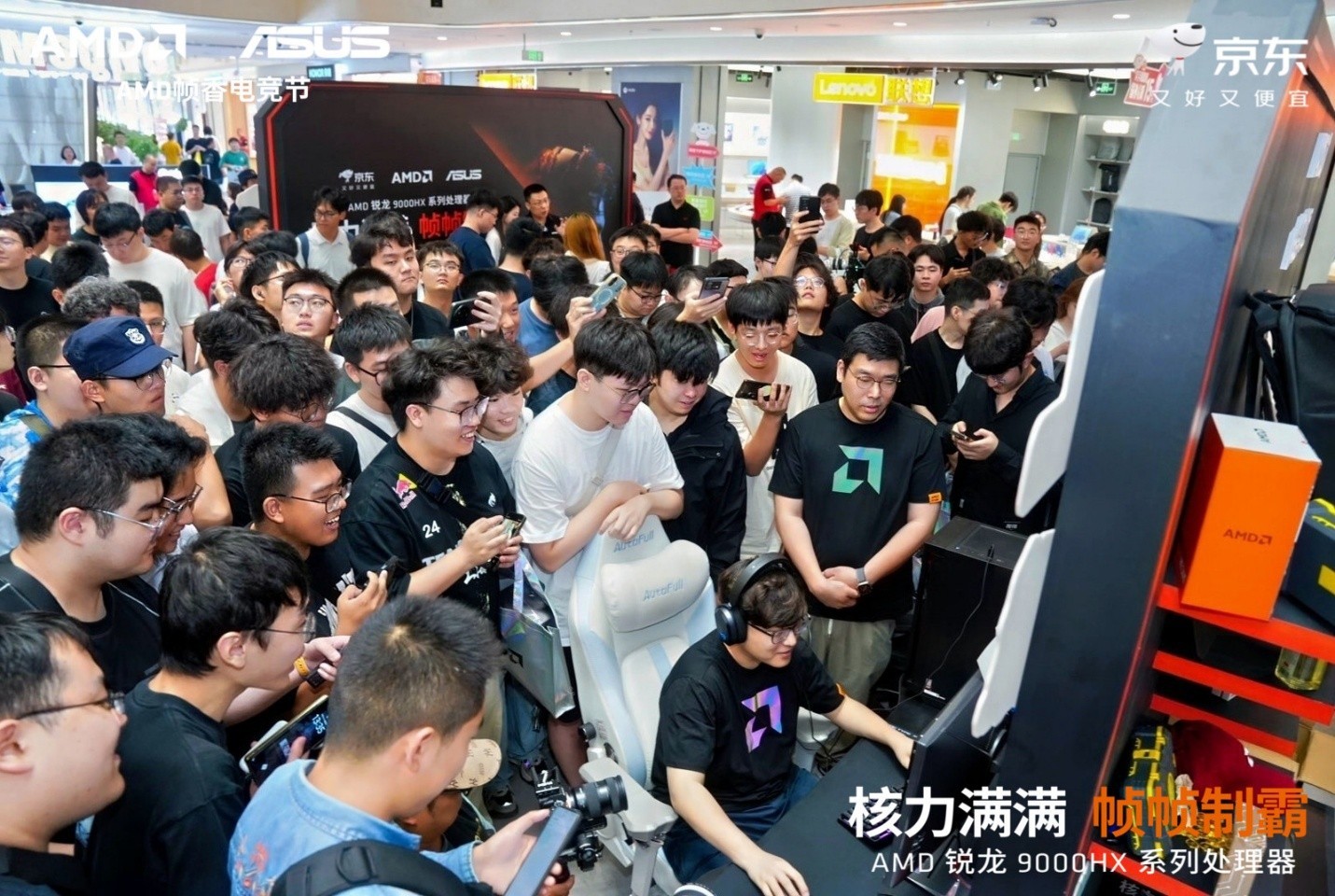 除线上购机福利外,AMD 更将电竞热情延伸至线下 —— 联合京东 Mall 打造沉浸式互动场景,邀请多位知名游戏大咖亲临现场,依托锐龙 9000HX/HX3D 系列处理器的高帧率输出、低延迟响应优势,打造属于玩家的线下电竞狂欢派对。