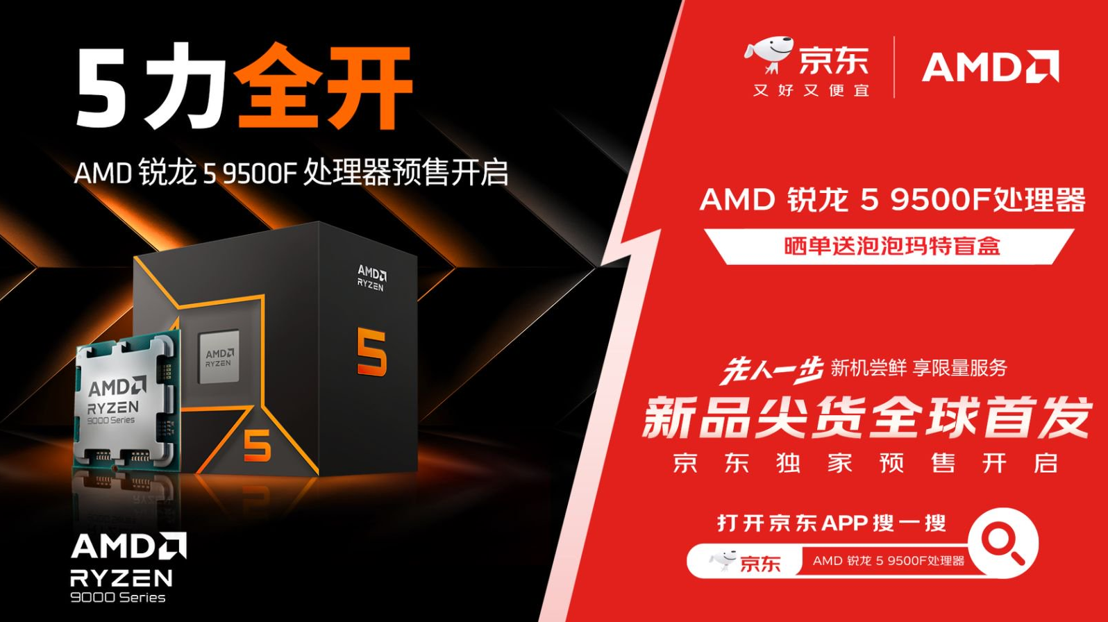 更多关于AMD 锐龙5 9500F处理器的预售活动还请朋友们今晚8点登陆上面的活动链接仔细查看了,大家也可以今晚在京东商城搜索AMD 锐龙5 9500F,这款尖货也将作为首发出现在大家面前。5力全开,相信AMD 锐龙5 9500F处理器的预售活动一定可以让DIY玩家们眼前一亮。