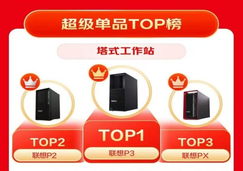 电商称霸,包揽前三。京东平台工作站品类Top3全由联想包揽,旗舰级AI工作站ThinkStationPX更首次跻身前三,成为高端用户的新宠。