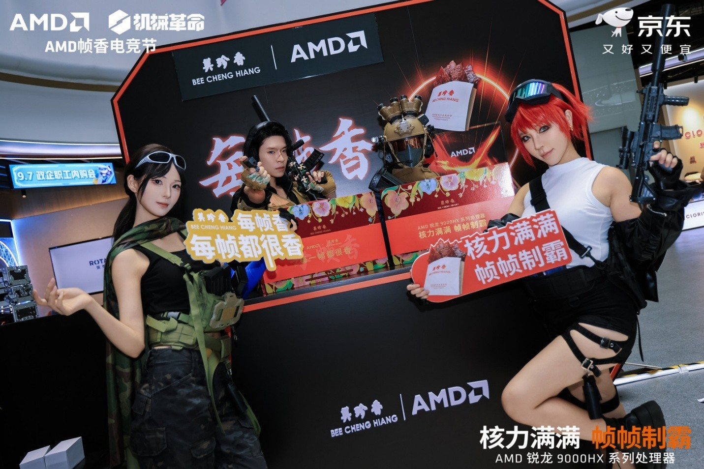 在激烈的电竞对战中,搭载AMD 锐龙9000HX系列处理器的强劲性能不仅助你打出神级操作,更为你带来身心兼具的完整体验——而这份成就感,也值得配上同样珍贵的犒赏。本次AMD帧香电竞节特别携手百年匠心肉品品牌「美珍香」,以及全国销量领先的经典荔枝饮料品牌「珍珍」,共同打造了一场融合高性能体验与美味享受的跨界盛宴。现场玩家不仅在游戏中感受到AMD 锐龙9000HX系列处理器带来的流畅与稳定,更在激战之余品尝到美珍香的特制肉脯和珍珍荔枝饮料的清爽甘甜,真正实现了“性能体验+味蕾享受”的双重满足。