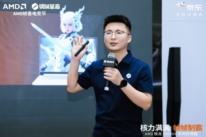 机械革命电竞产品中心产品经理梅洋登台介绍了搭载AMD 锐龙9000HX/HX3D系列处理器的家族产品,包括搭载了AMD 锐龙9 9955HX 处理器的机械革命蛟龙16Pro、机械革命蛟龙16Pro 潮玩版、机械革命苍龙16X,及搭载了AMD 锐龙9 9955HX3D处理器的机械革命苍龙16Ultra电竞游戏本。