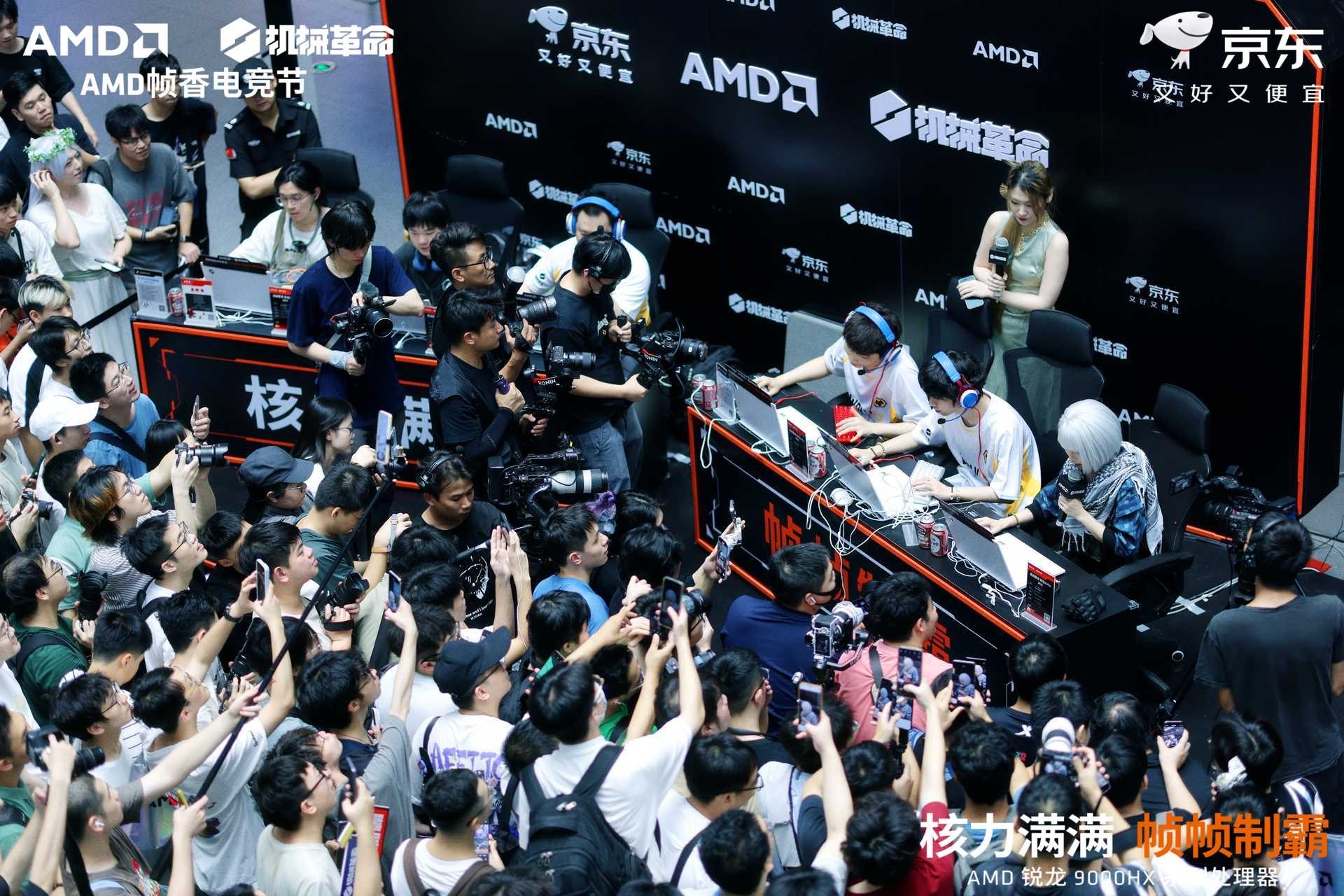 AMD联合京东 Mall 打造沉浸式互动场景,邀请多位知名游戏大咖亲临现场,依托锐龙 9000HX 系列处理器的高帧率输出、低延迟响应优势,打造沉浸式的线下电竞嘉年华,让玩家们零距离共享狂欢;