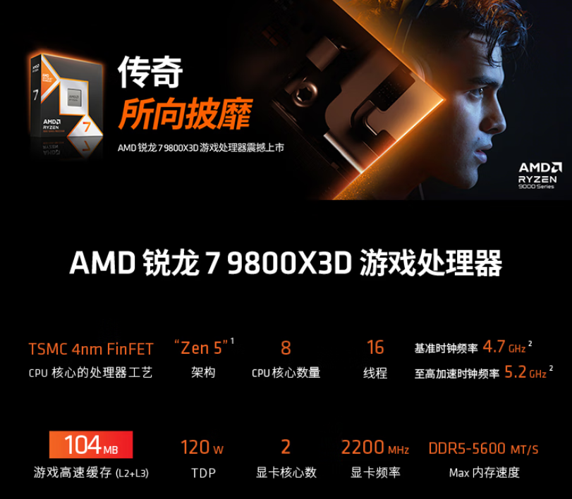 AMD锐龙7 9800X3D处理器购买链接: