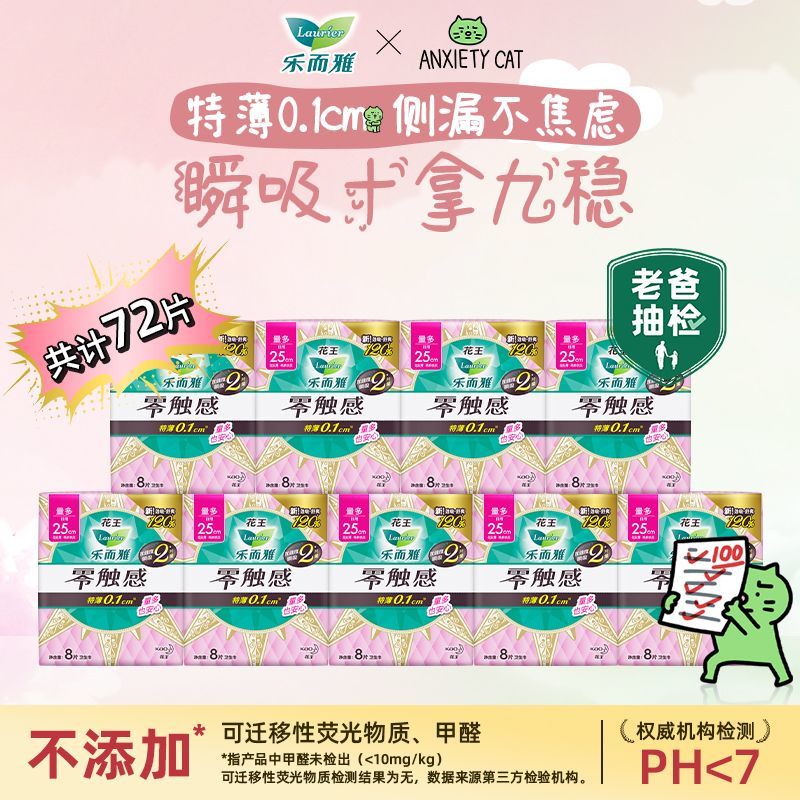 Laurier乐而雅花王乐而雅卫生巾,专为女性生理期打造。这款25cm日用姨妈巾采用零触感设计,超薄柔软还贴身,能给你生理期贴心呵护,一包有72片,可满足较长时间使用。