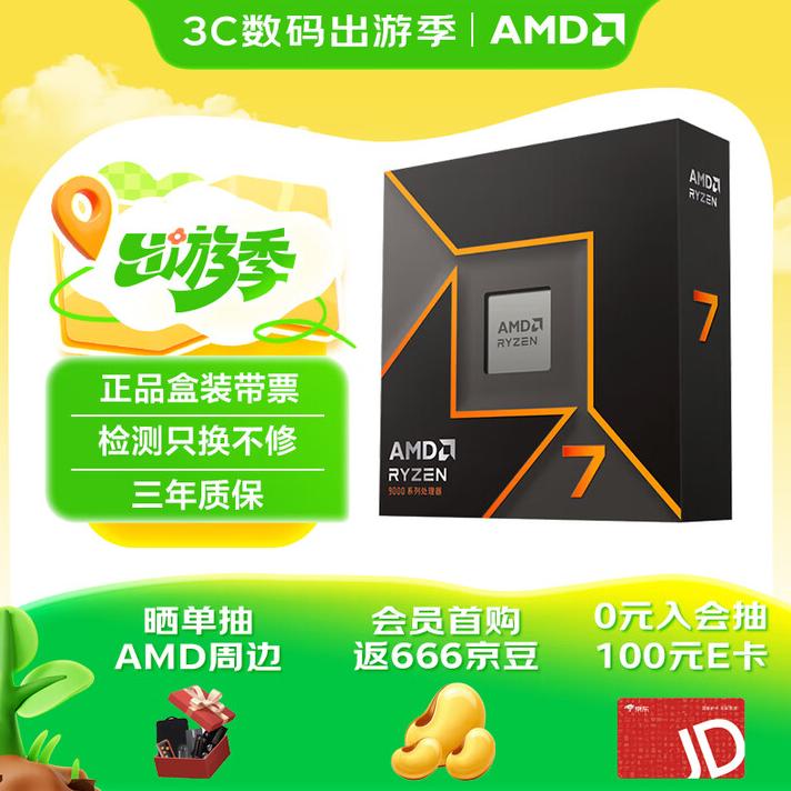 目前AMD锐龙7 9700X处理器在京东自营旗舰店3C数码出游季的