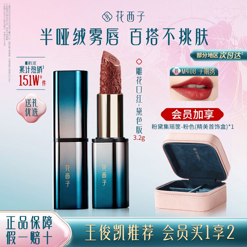 花西子雕花口红唇膏哑光柔雾质地全新上市,融合东方美学与现代工艺,每一支口红都精心雕刻精美花纹,不仅是美妆单品更是艺术品,显白提气色,持久锁色不掉妆,细腻顺滑轻松上唇,送女友首选高端大气有心意。
