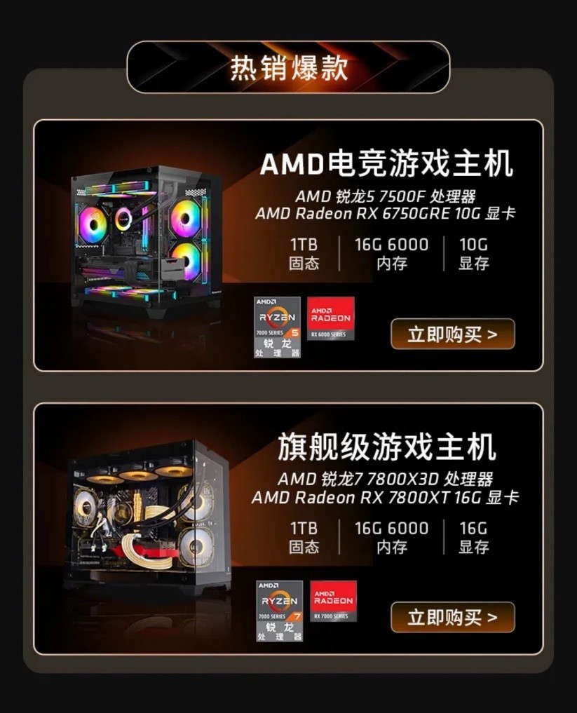 当然对于不熟悉DIY的朋友们也可以直接前往整机专区,AMD拼多多电脑官方旗舰店准备了大量整机,无论是专注电竞游戏、主打日常办公还是高端发烧玩家旗舰,大家都可以在这里找到。这些整机均以AMD锐龙处理器为核心,其它配件都来自AMD核心合作伙伴,每一款都各具特点,可以满足不同人群的使用需要,感兴趣的用户可以直接在活动页面好好挑选起来。