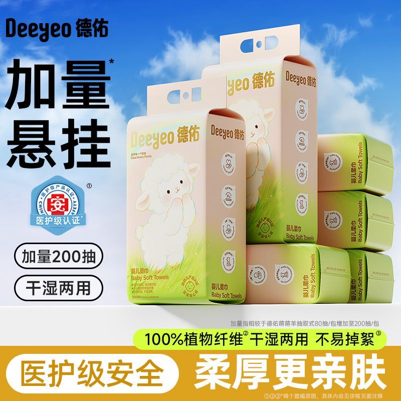 德佑婴儿绵柔巾悬挂款干湿两用新生儿专用洗脸巾一次性抽取珍珠纹现正参与百亿补贴大促原价55.89元现在通过拼多多首页搜索减减减进入活动页面点击整点抢券再兑超值券使用1张减减卡即可兑换6折优惠券最高立减20元下单1件到手价仅需33.09元超值低价不容错过这款绵柔巾专为新生儿设计采用亲肤柔软的珍珠纹材质干湿两用既可作日常洗脸巾也可沾水湿用呵护宝宝娇嫩肌肤悬挂式设计方便取用不易污染抽取式包装卫生便捷是宝妈育儿必备好物品质保障使用安心快趁优惠入手让宝宝享受温柔清洁体验