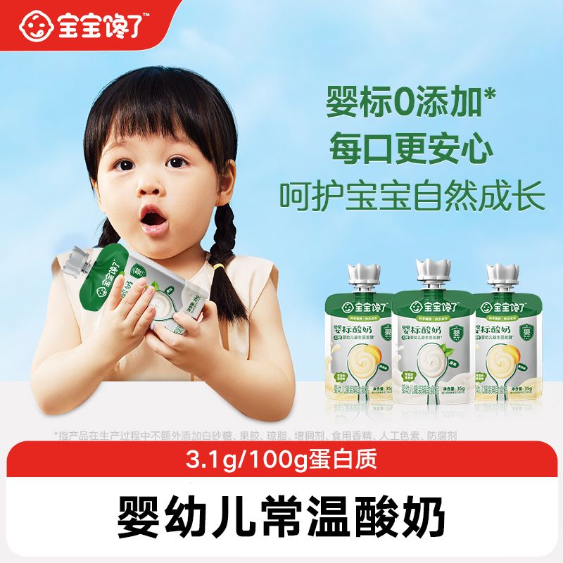 宝宝馋了婴幼儿酸奶35g是专为婴幼儿设计的常温辅食零食饮品,符合婴标标准,采用优质奶源,口感细腻酸甜适中,富含多种营养成分,助力宝宝健康成长。独立小袋包装方便携带,随时随地满足宝宝的味蕾需求,是宝妈们信赖的宝宝辅食首选。
