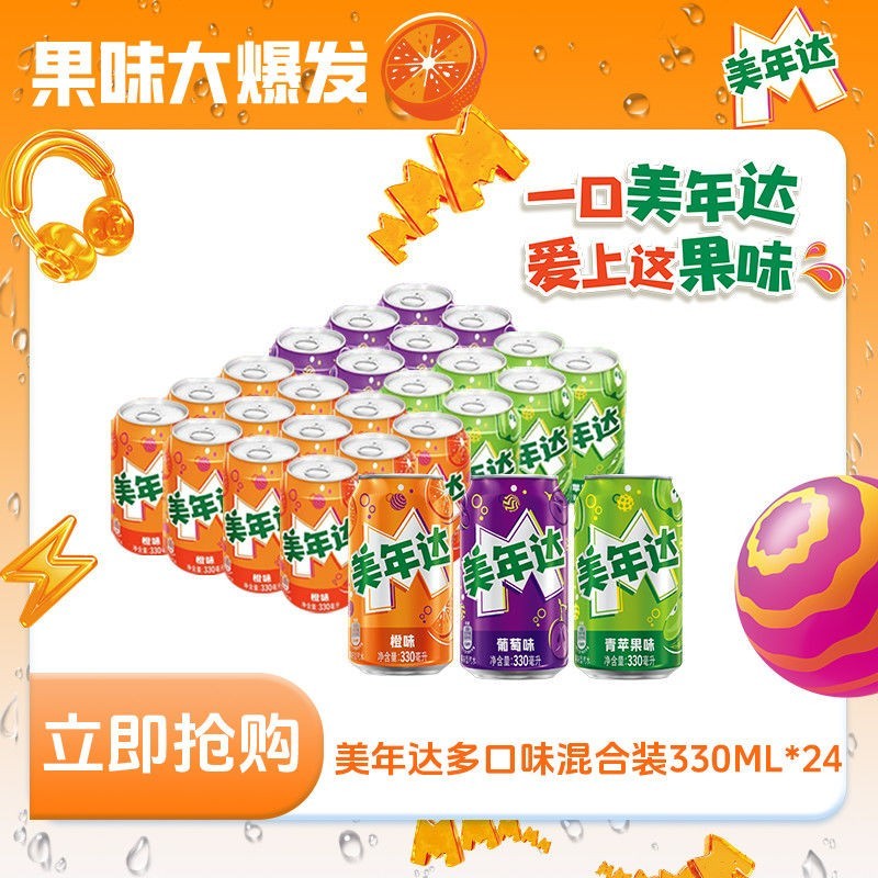 百事旗下美年达多口味混合装碳酸饮料330ml24罐现正热卖中,清爽果味畅享每一刻,气泡十足口感纯正,多种口味一次满足不同味蕾需求,无论是聚会畅饮还是日常解渴都是理想之选。
