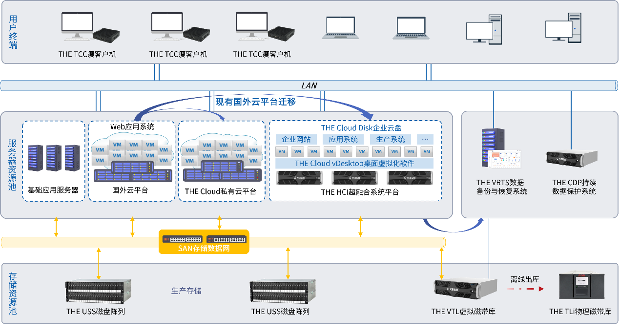 可提供私有云、桌面云和超融合、企业云盘多种解决方案,可自适应满足私有云、混合云、云迁移、云办公各种场景的云需求。