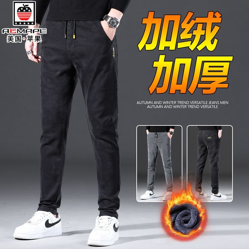 爱普 AEMAPE 苹果秋冬季厚款松紧腰直筒牛仔裤加绒加厚小脚裤子男,专为秋冬季节打造,保暖舒适又不失型格。采用优质加绒内里,锁温抗寒,贴身穿着柔软亲肤,即使寒冷天气也能保持温暖。高弹力松紧腰设计,贴合腰部不勒肚,穿脱更方便,适合多种体型。直筒小脚剪裁,修饰腿型显瘦百搭,轻松驾驭日常通勤或休闲出行。