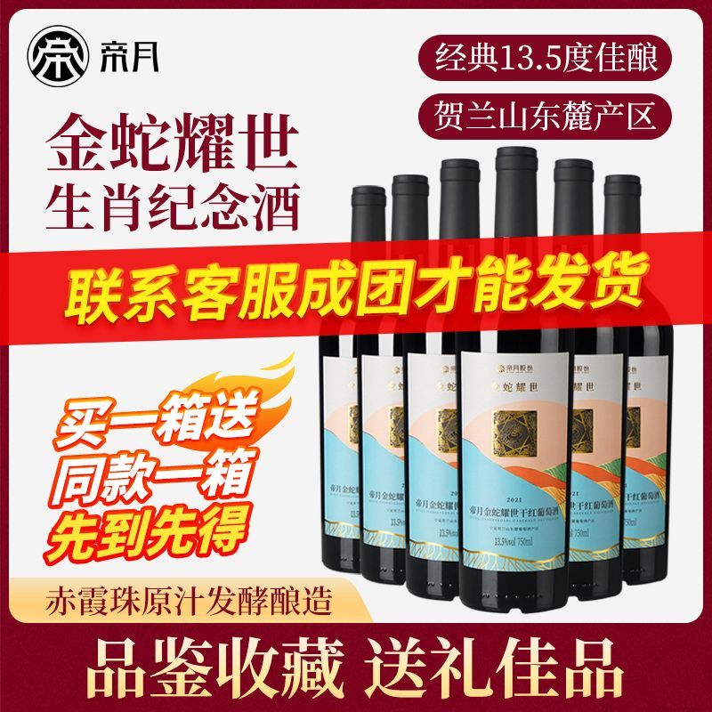 帝月葡萄酒红酒15度干红产自宁夏贺兰山,选用优质赤霞珠葡萄精心酿造,酒体醇厚香气浓郁,带有黑浆果、香草和淡淡烟熏风味,口感层次丰富余味悠长。特别推出蛇年生肖纪念款,瓶身设计精美融合传统生肖元素,极具收藏与送礼价值。现拼多多限时促销原价333.60元,最终到手...