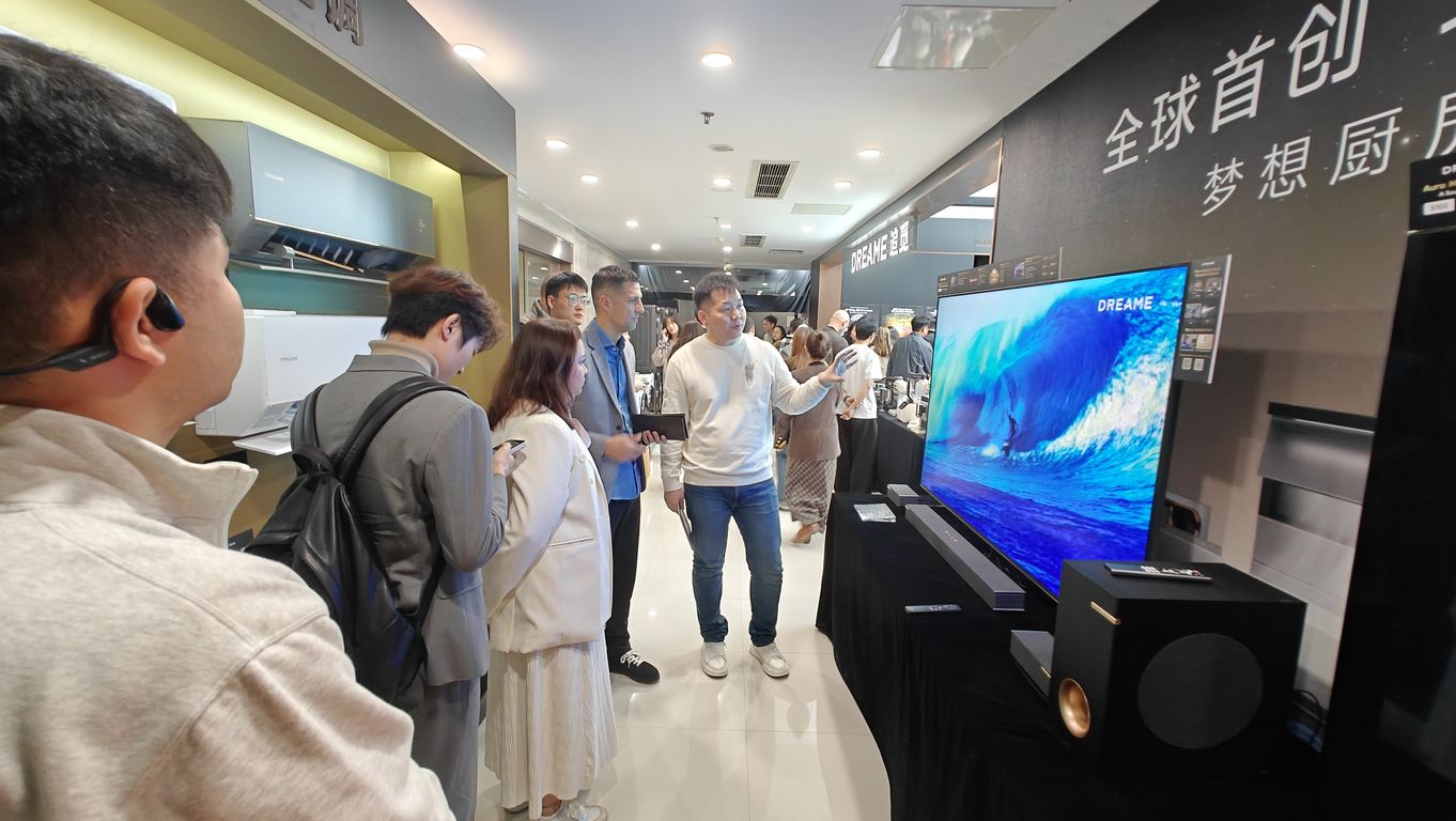 本次大会中,追觅Aura Mini LED电视V3000与S100系列成为焦点。V3000系列搭载定制“黑晶臻彩屏”,具备抗反射、无倒影特性,配合178°广视角,在户外强光下仍保持画面清晰。其Aura Mini LED与量子点技术结合,实现2800尼特峰值亮度与98% DCI-P3色域覆盖,辅以2.1.2声道大师声学系统,获得IMAX Enhanced等八大权威认证。