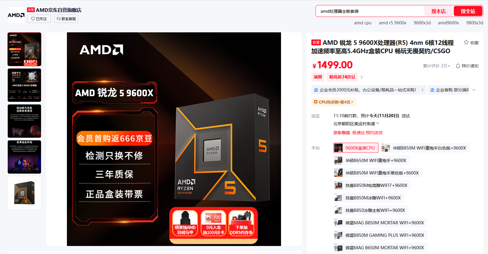 目前AMD 锐龙5 9600X处理器在在京东自营旗舰店的最新日常报价是1499元,成为京东旗舰店会员还有0元入会抽100元E卡,首购返666京豆和晒单抽AMD羽绒马甲和DDR5内存条等活动。近期锐龙5 9600X处理器的报价非常平稳,已经稳定在了1500元以下,大家可以随时入手。对于为了体验《魔兽世界》泰坦重铸时光服攒机的玩家们来说,AMD 锐龙5 9600X真的是一款性价比极高的处理器,一颗好的CPU对于游戏的体验提升至关重要。