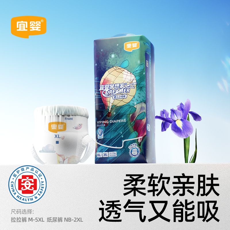 宜婴新梦想家拉拉裤是专为婴儿设计的优质纸尿裤,也是学步裤。它有XL/XXL/XXXL多种尺码可选,能满足不同阶段宝宝的需求。这款拉拉裤十分柔软,能温柔呵护宝宝娇嫩的肌肤。而且具备良好的透气性,让宝宝的小屁屁时刻保持干爽舒适。