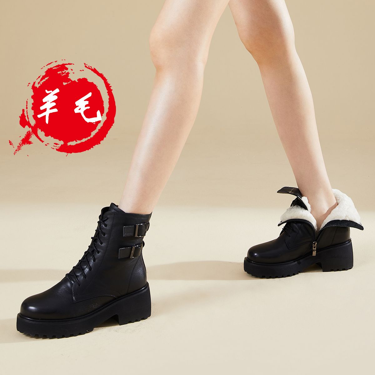 FED女士真皮羊毛冬短靴来啦!这款英伦风马丁靴采用优质真皮材质搭配加厚保暖羊毛内里,温暖舒适锁住温度,冬季穿也超暖和,防水台厚底设计不仅防滑耐磨还显高显瘦,轻松驾驭雨雪天气,无论是日常通勤还是户外出行都能从容应对。