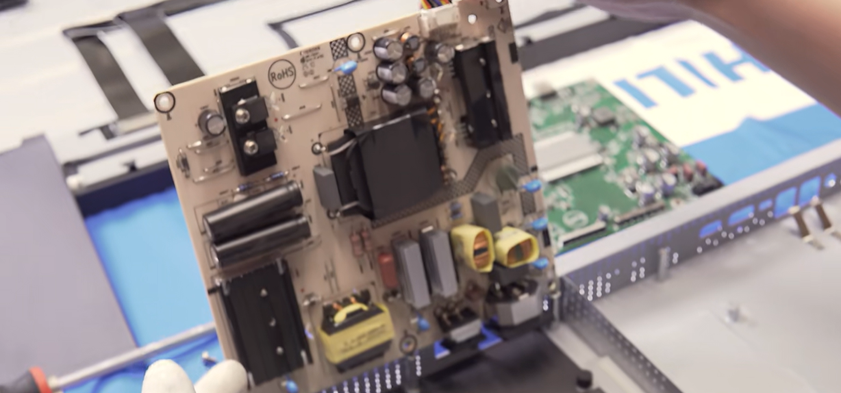 核心POWER区域,覆盖黑色防火麦拉,不仅能阻断火焰蔓延路径,还能通过物理隔离从根本上防止人员触电风险。独立的金属屏蔽隔片为电源板创造了专属工作空间,减少电路间干扰。此外,电源板材选用CEM-1级材料,兼具优良阻燃特性与抗弯曲强度,为显示器的持久稳定运行提供基础保障。