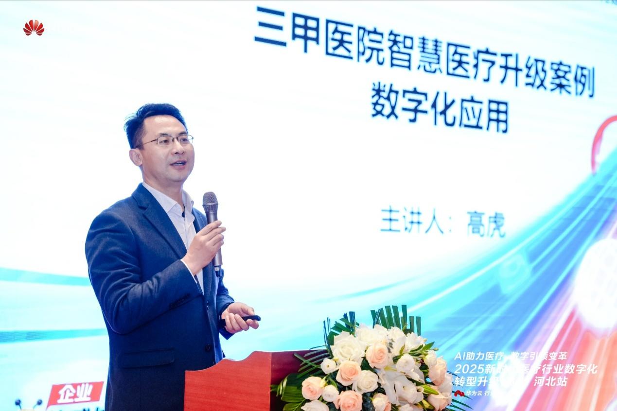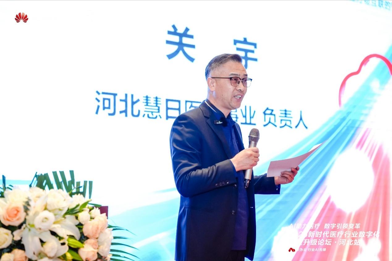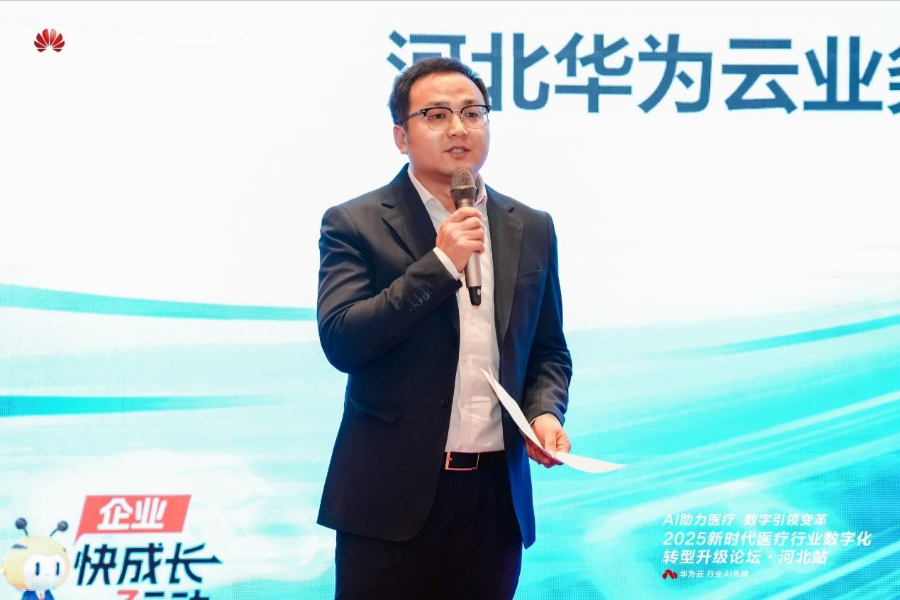 在开场致词环节,华为云河北业务部副部长表示,2025年作为十四五规划收官之年,医疗行业数字化已从选择题变为必答题。在政策、技术与市场需求的同频共振下,行业急需构建新型数字医疗服务模式,实现从被动诊疗向主动健康管理的战略性转变。同时为了响应国家号召《健康中国2030规划纲要》,华为云依托自身云服务能力,基于高性能、高可靠、高安全的数字化底座,与河北慧日等业内优秀医疗合作伙伴一起,为医疗行业客户提供完善的医疗应用和服务体系。