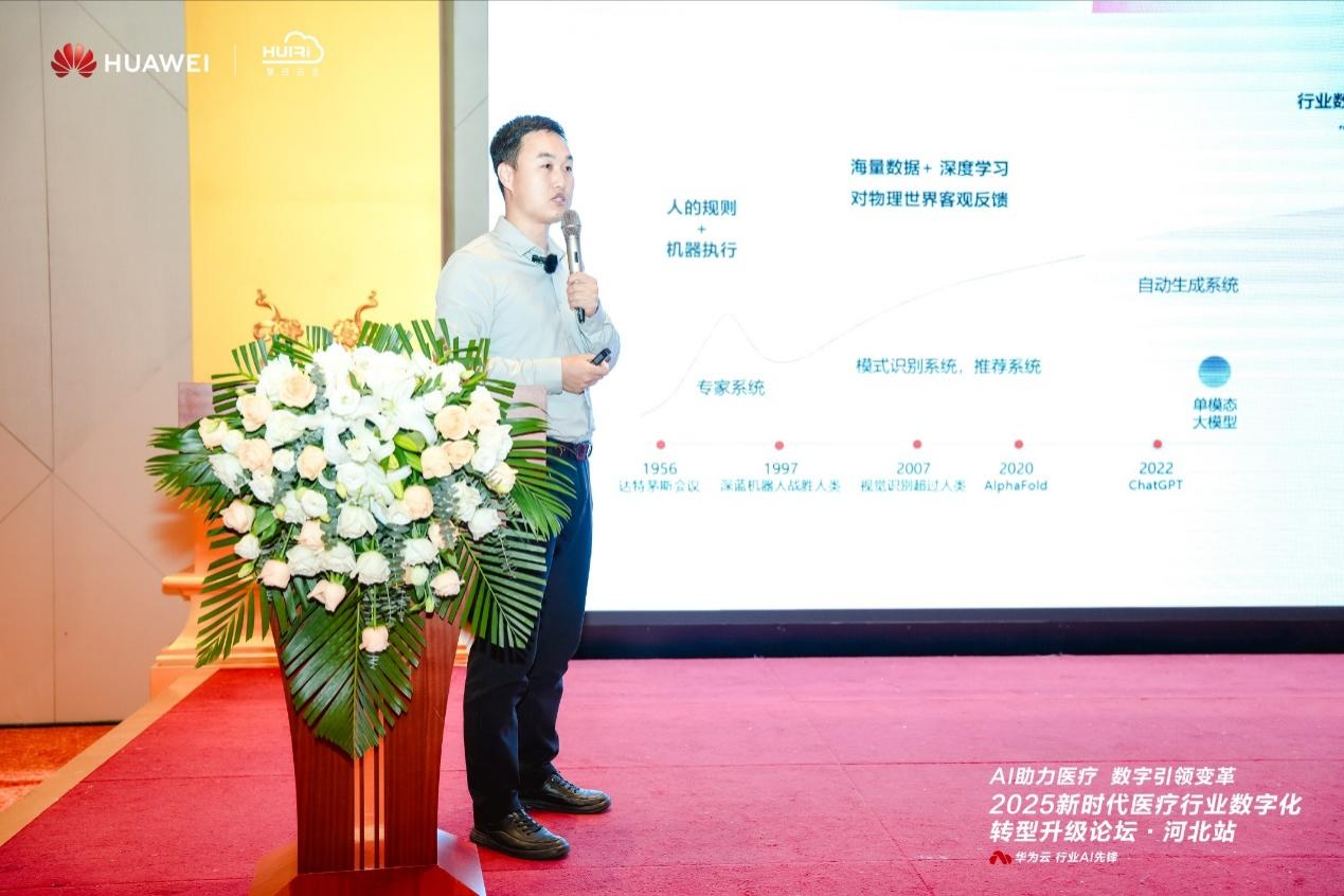 [中国,石家庄,2025年9月21日]华为云携手河北慧日信息技术有限公司在石家庄成功举办以“AI助力医疗·数字引领变革”为主题的2025新时代医疗行业数字化转型升级论坛河北站。随着人工智能的飞速发展,医疗领域正经历着前所未有的变革——从辅助诊断到精准诊疗,从服务平台到精细化运营管理,人工智能正在重塑医疗的未来。本次论坛共汇聚了医疗行业的专家学者、医院管理者与技术先锋,共同探讨人工智能技术在医疗领域的创新应用与实践成果,旨在为推动医疗行业的数智化转型贡献智慧与力量。