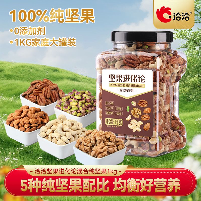拼多多正在进行百亿补贴活动,洽洽坚果进化论每日坚果罐装1000g大桶分享装值得关注。这是一款纯坚果果干的休闲零食,适合大家一起分享。