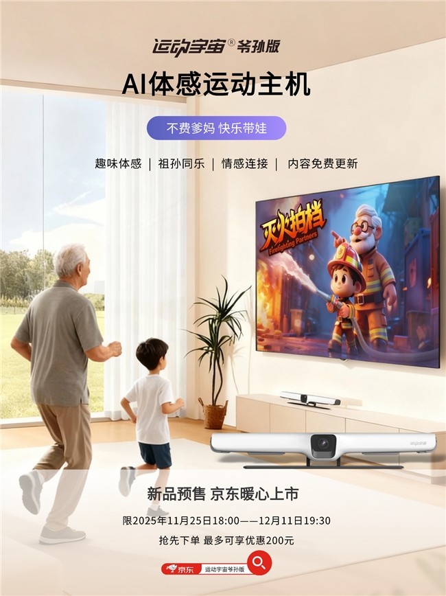 目前,运动宇宙®AI体感运动主机爷孙版已在京东商城开启独家预售。从“科技产品”到“情感与健康双重桥梁”,运动宇宙爷孙版的探索,不仅为万千中国家庭提供了一种新的互动选择,更引发了社会对“高质量陪伴”的深度思考。在科技快速发展的今天,如何让技术同时服务于人的情感需求与健康诉求,让家庭关系更紧密、养老更有质量,运动宇宙爷孙版的探索或许能给出答案。