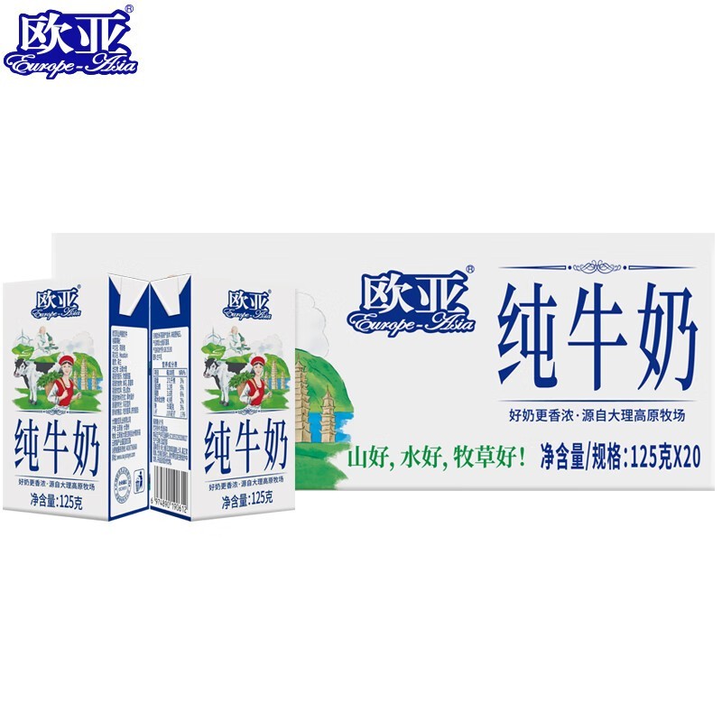 欧洲原装进口欧亚纯牛奶每盒125毫升共20盒装现售价33.93元目前在拼多多百亿补贴活动中享受超值优惠进入百亿消费券页面点亮星星即可领取5折优惠券数量有限先到先得领券后下单一件再享9.5折叠加优惠后单件到手价仅需17.23元相当于直降超过50%精选优质牧场奶源营养丰富口感...