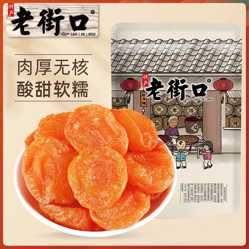 老街口红杏干300g新鲜上市,精选优质鲜杏制成,果肉厚实饱满,口感软糯酸甜适中,保留了杏子天然风味与营养,无核酸添加,健康更安心,是日常休闲、办公追剧的理想零食。