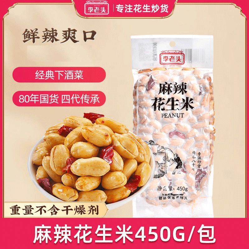 李老头麻辣五香花生,450克的大份量,是绝佳的下酒菜零食。