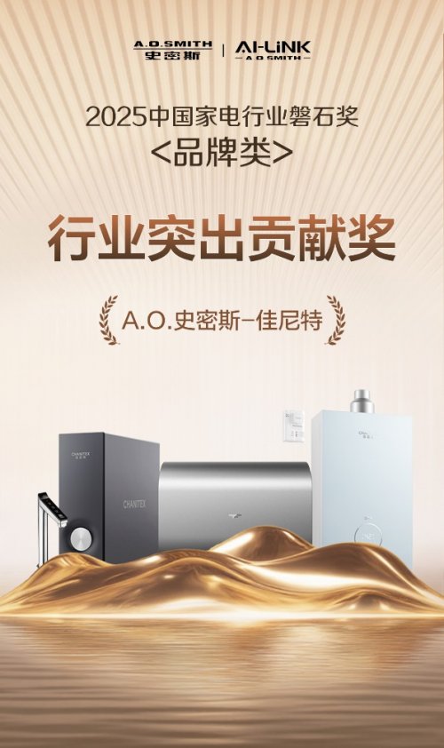 本文属于原创文章,如若转载,请注明来源:A.O.史密斯-佳尼特摘“磐石奖 -行业突出贡献奖”,领跑家电年轻化新潮流https://news.zol.com.cn/1091/10917548.html