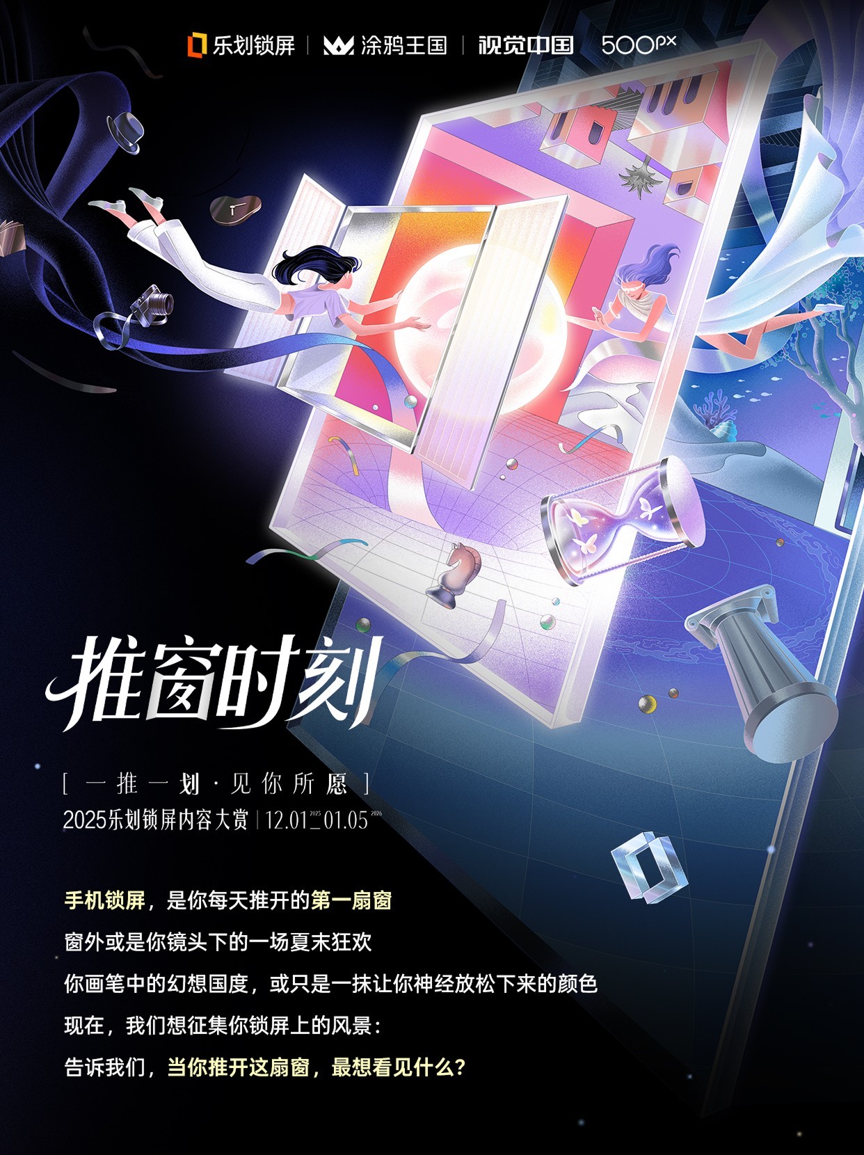目前,2025乐划锁屏内容大赏征集通道已在涂鸦王国、视觉中国500px官网同步开启,赛事旨在汇聚优质视觉创作,共同打造更具美学价值与情感共鸣的锁屏内容体验。