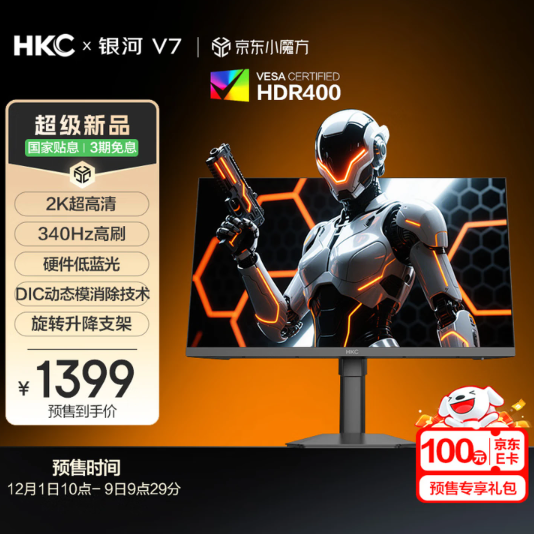 当“高刷”成为电竞显示器的核心刚需,多数300Hz以上规格的产品往往将价格锁定在2000元档,让预算有限的学生党、宿舍玩家望而却步。近日,HKC瞄准大众电竞市场推出全新机型——银河V7,以“27英寸2K+340Hz极速刷新+FAST IPS面板”为核心配置,叠加95%DCI-P3广色域、HDR400认证等素质,首发预售价仅1399元,直接将旗舰级高刷体验下放到入门价位,成为宿舍电竞与平民玩家的“性价比新选择”。