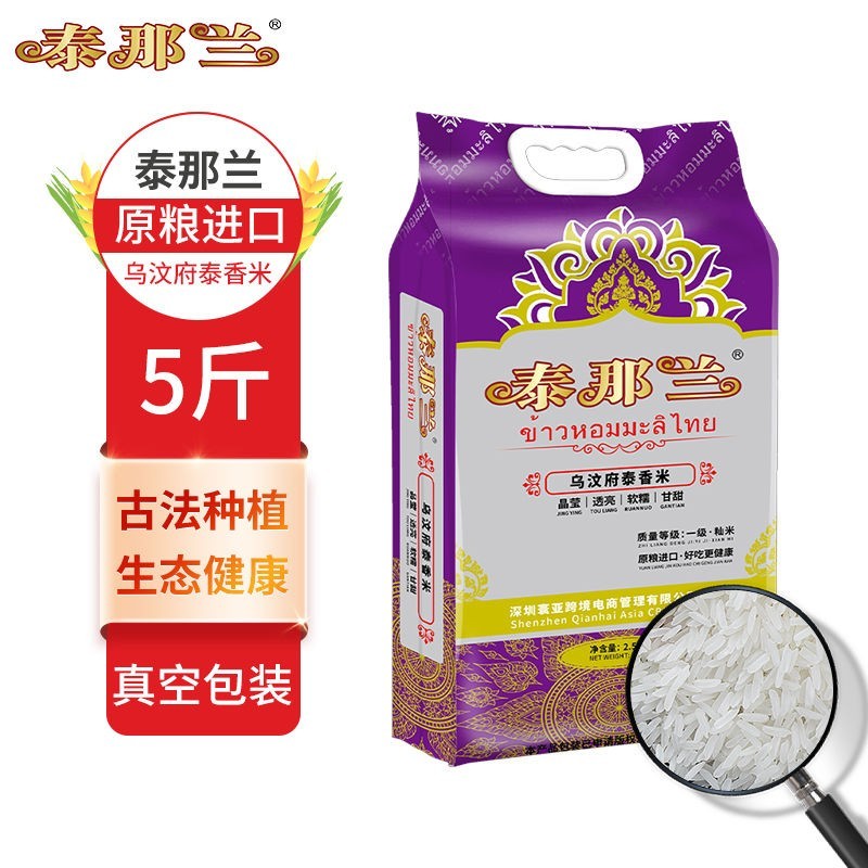 泰那兰泰国香米,精选优质长粒香米,来自泰国,米粒修长饱满,煮出的米饭香气浓郁,口感软糯香甜。