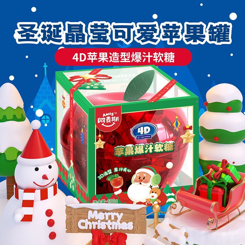 阿麦斯 amos 圣诞节平安夜苹果爆汁软糖 100g,精选优质原料精心制作,还原真实苹果口感,每一颗软糖都包裹着浓郁果味爆汁夹心,咬一口酸甜清新,果香四溢,带来丰富层次的味觉享受。独立小包装设计,方便携带,随时随地分享甜蜜时刻。