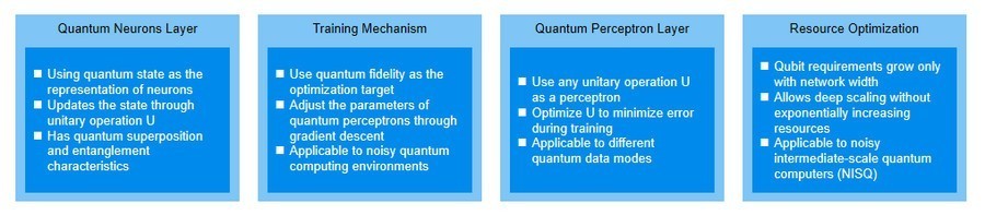 这一创新设计意味着,即使神经网络变得非常深,其所需的量子比特资源仍然保持在一个可控范围内,从而降低了对硬件的要求。这一特性使得深度量子神经网络能够在现有的量子处理器上进行训练,并为未来大规模量子机器学习模型的实现提供了可行的路径。