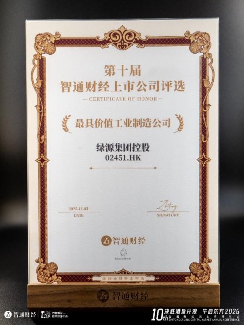 2025年12月3日,第十届智通财经上市公司颁奖盛典上,绿源集团控股(02451.HK)凭借在工业制造领域的长期深耕与稳健的价值创造能力,荣获“最具价值工业制造公司”奖。该奖项围绕业绩表现、行业地位、创新能力、公司治理及资本市场表现等维度综合评选,折射出资本市场对绿源在先进制造与绿色出行领域长期韧性与发展潜力的认可。