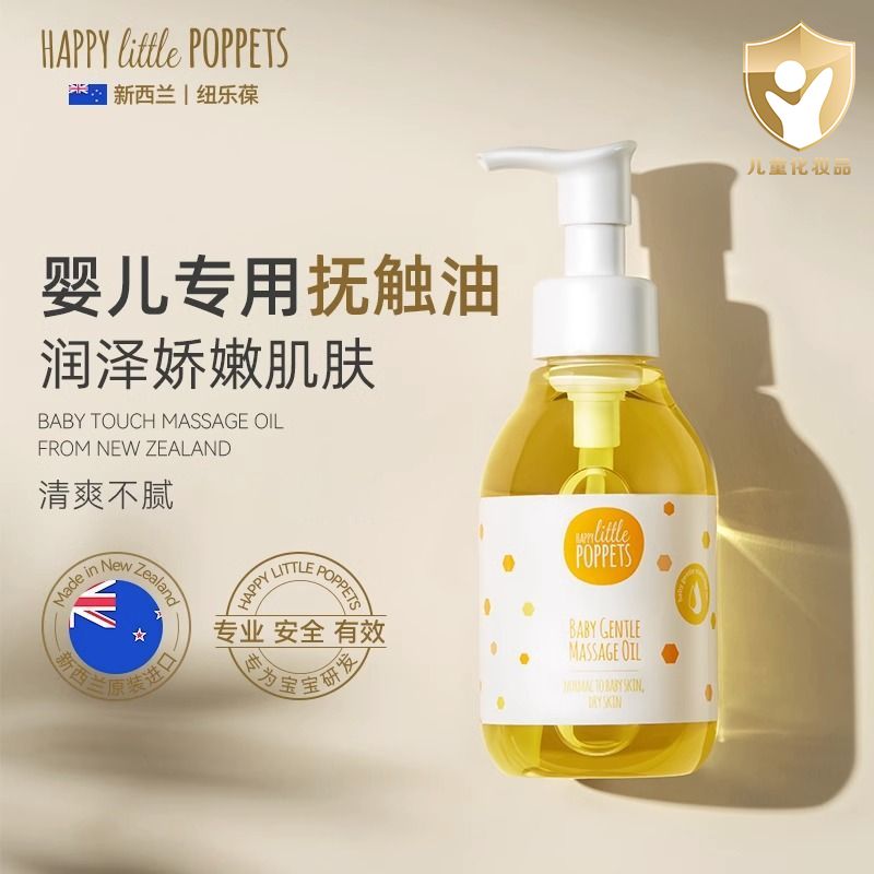 纽乐葆 HAPPY little POPPETS 婴儿抚触油150ml,专为宝宝娇嫩肌肤研发的全身免洗按摩油,温和配方不含刺激成分,富含天然植物精华,深层滋养保湿,帮助增强宝宝皮肤屏障,使用后肌肤柔软光滑不黏腻,适合日常抚触按摩及全身护理。轻盈质地易吸收,无需冲洗,让亲子互动更轻松愉悦。