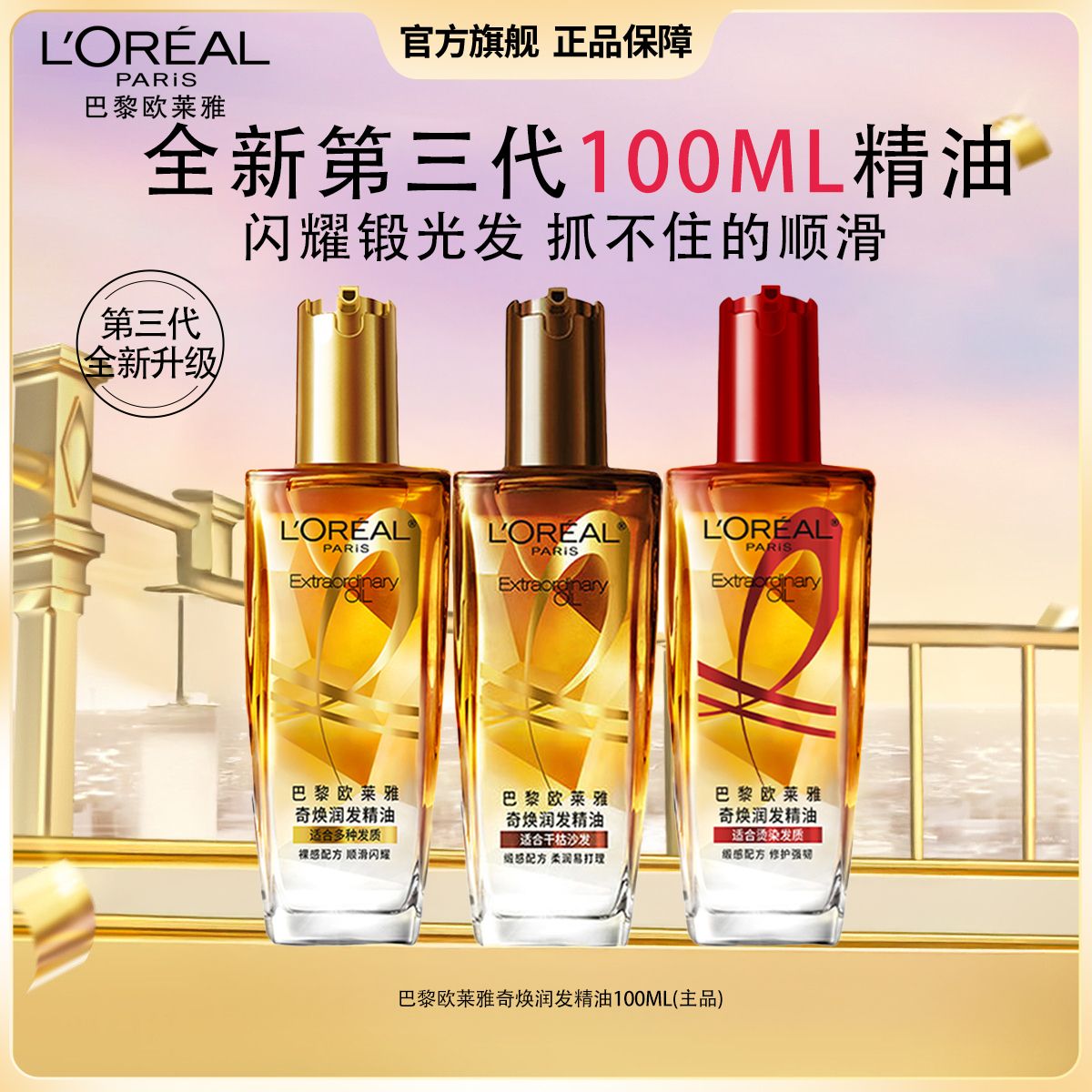 巴黎欧莱雅L'OREAL PARIS护发精油100ml小金瓶奇焕润发精华油,蕴含多重滋养成分,深入修护受损发质,有效改善干枯毛躁,令秀发柔顺亮泽,散发自然健康光泽。轻盈不油腻的质地快速吸收,使用后头发更显蓬松有型,还可搭配吹风造型提升效果。持久留香带来优雅体验,是日常护发与造型的理想之选。