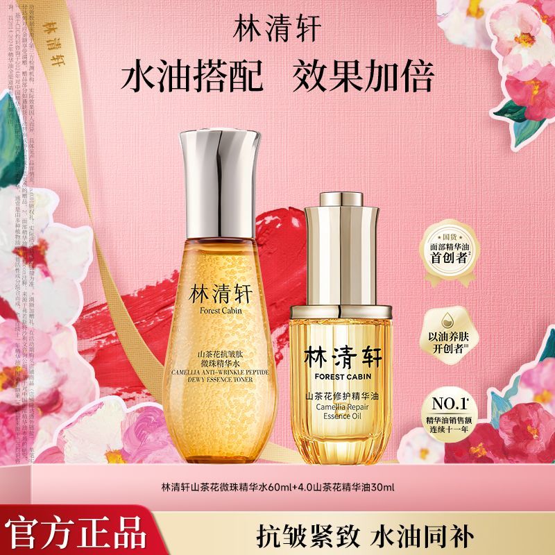 林清轩forest cabin山茶花抗皱肽微珠精华水全新升级,融合山茶花精粹与抗皱肽科技,深层滋养肌肤,有效淡化细纹紧致轮廓,微珠包裹技术让活性成分精准释放,水油同补一步到位,质地轻盈不油腻,适合各种肤质日常护理使用,尤其对干燥缺水、初老肌表现卓越。