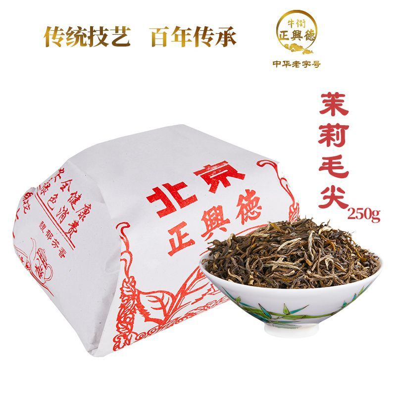 牛街正兴德茉莉花茶250g浓香型,精选优质茶叶与新鲜茉莉花多次窨制,茶香浓郁持久,口感醇厚回甘,是日常饮用或待客的优选好茶。