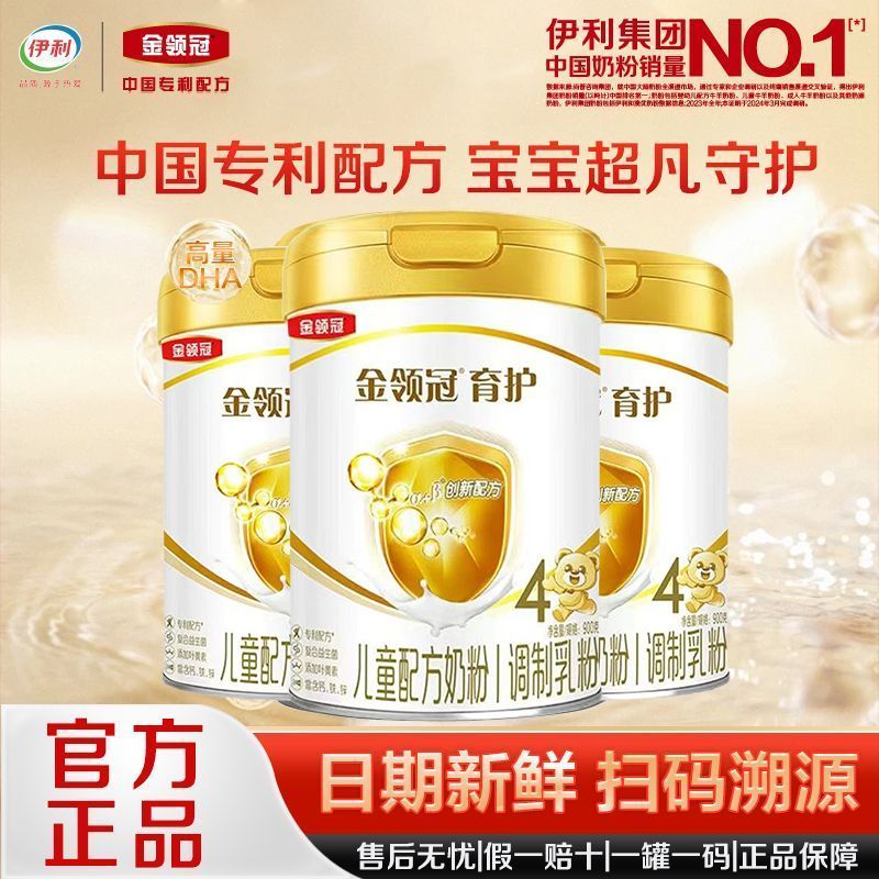 伊利金领冠育护4段奶粉专为3-6岁儿童设计,采用中国专利配方,科学配比营养成分,助力孩子全面成长,增强免疫力,促进大脑和视力发育,易吸收不上火,900g大罐装更耐用,品质可靠妈妈安心。