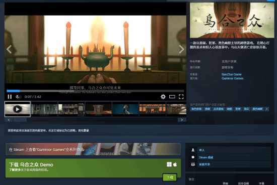 一款由中国团队NanZhai Game打造的本土题材悬疑剧情游戏乌合之众,计划于2025年底正式发布。然而,这款尚未面世的作品近日却因一场与游戏内容并无直接关联的网络争议,意外陷入舆论风波。