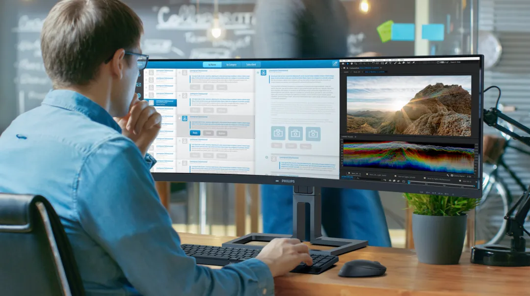 产品优势:该类型商用显示器皆具备21:9/32:9超宽屏,超宽视野可轻松容纳多轨道时间线、素材面板与预览窗口,无需频繁切换。此外5K超清分辨率则精准还原每一处色彩细节与设计肌理,让创作过程更沉浸、更