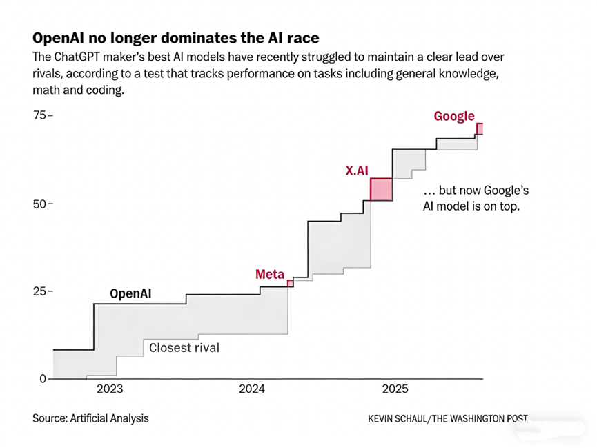 在被谷歌Gemini3反超后仅半月余,OpenAI便祭出了首轮反击——将其最新的GPT-5.2推出时间提前至12月9日。而这离其上个版本GPT-5.1的发布,也不到一个月。