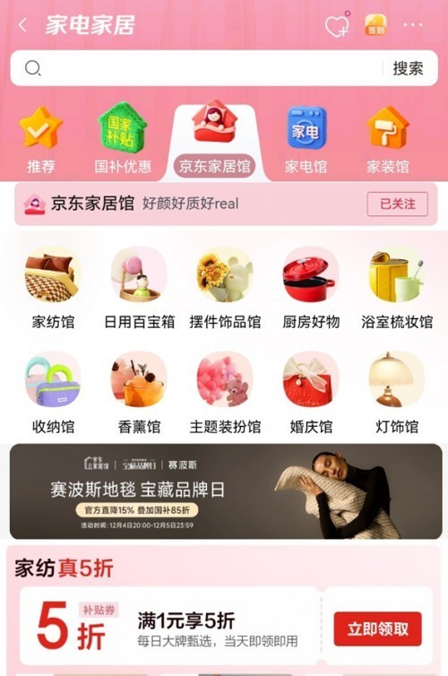 岁末迎新,京东12.12温暖启程,正是为家焕新颜、开启温暖新篇的好时节。京东家居馆联合罗莱家纺、水星家纺、富安娜、恒源祥、洁玉、洁丽雅、禧天龙、EULLY、国家图书馆等知名品牌,为消费者带来家纺、日用、家居装饰以及圣诞、新年等节庆好物。12月11日晚8点至12月12日期间,消费者只需打开京东APP搜索“家居馆”进入活动会场,即可享受满1元享5折、满200减100的超值优惠,开启一场关于“家”的焕新仪式。
