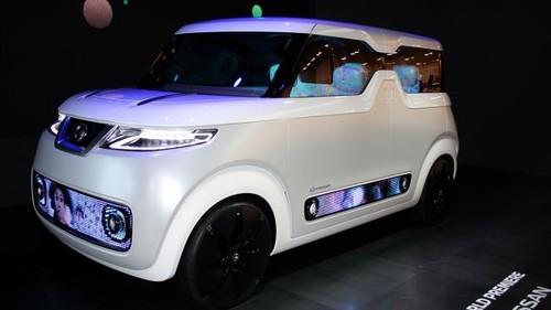跟奔驰 Vision Tokyo 相比,日产的这款 Teatro for Dayz 并不是非常酷炫,但是它的车身外侧就像一块空白的画布一样,设计师使用了多块显示屏,供车主选择自己喜欢的图案、照片甚至是电影进行显示。而在日产 Teatro for Dayz 的车厢内部,司机可以通过车顶的投影系统来改变内部的风格。