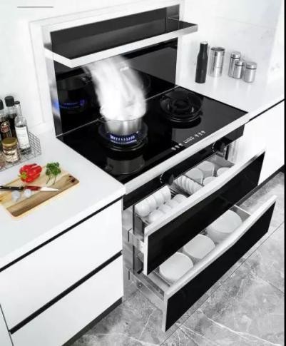 “高颜外形,品质核心”,蓝炬星V2集成灶的与众不同已经深入人心,105L的消毒柜给了厨房更多的空间可能,一级能效全心全意为你精打细算,防水防油电机镇守机器核心部件,为你省心,给家温情!