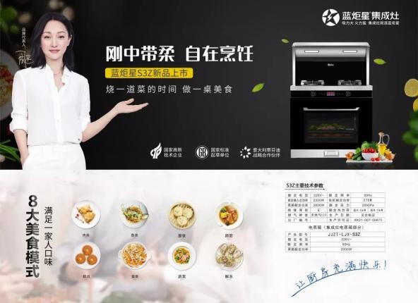“柔中带刚,自在烹饪”,蓝炬星S3Z集成灶向大家展示的是刚柔并进的时代需求,兼顾了油烟大吸力的同时,把易清洗做到了恰到好处,柔线型的机头设计,使你的清洁更顺畅,更是集成了蒸箱功能,把集成灶的产品优势升华,受到了广大消费者的热烈追捧。