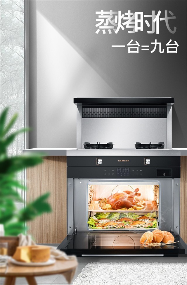 主要是奔着侧吸下排,吸烟干净买了金帝的集成灶,没想到底下的蒸烤箱还能hold住我们一家六口的大食量,意外之喜。